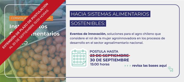 El sector silvoagropecuario y la cadena agroalimentaria nacional tienen una nueva oportunidad para acceder a financiamiento especializado. La Fundación para la Innovación Agraria (FIA), dependiente del Ministerio de Agricultura, anunció la extensión del plazo de postulación para su Convocatoria Nacional de Instrumentos Complementarios 2025 hasta el lunes 30 de septiembre.