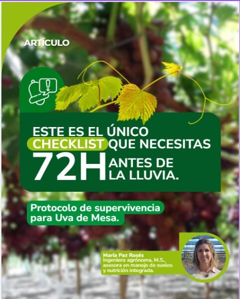 Manejo pre y pos lluvia en uva de mesa en etapa de maduración y cosecha